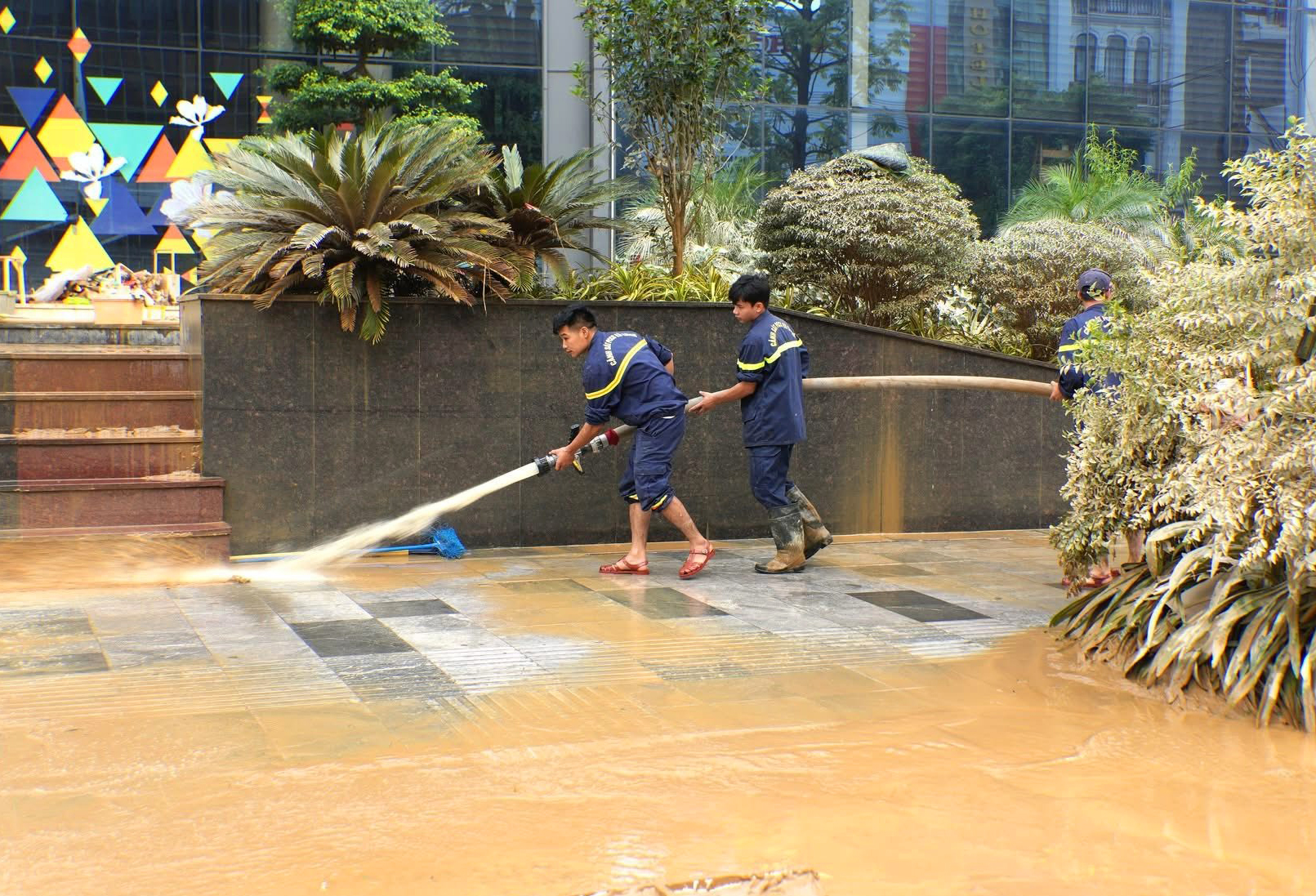 Công tác dọn dẹp gặp nhiều khó khăn do khối lượng bùn đất đọng lại rất dày, tạo thành từng lớp lầy lội và khối lượng rác thải đọng lại rất nhiều và bao phủ trên diện rộng