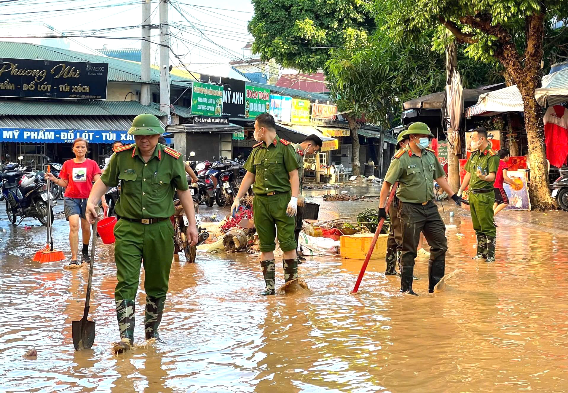 Từ sáng sớm đến chiều muộn, lực lượng Công an vẫn miệt mài giữa những con ngõ lầy lội nơi mà chỉ vài ngày trước còn ngập trong dòng nước đục ngầu