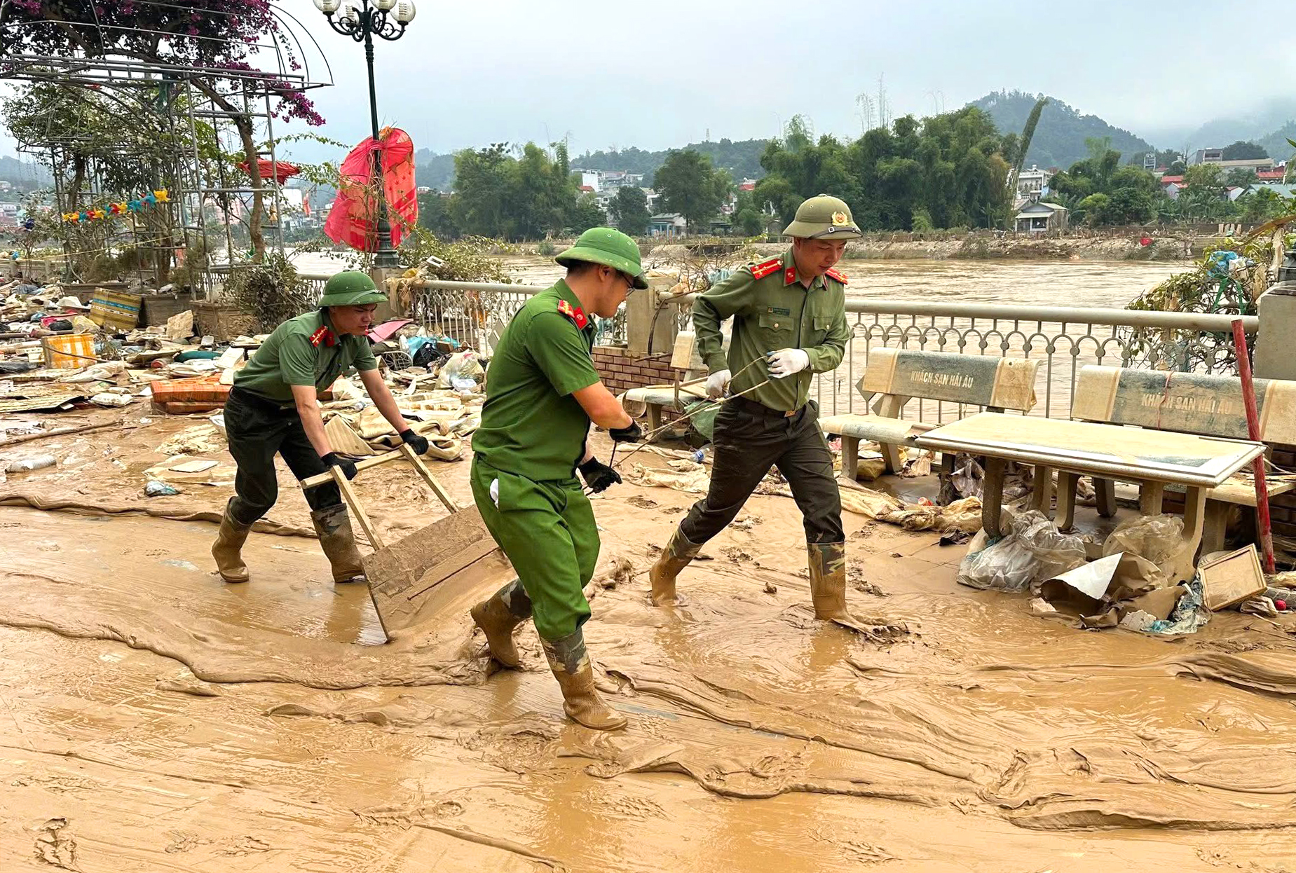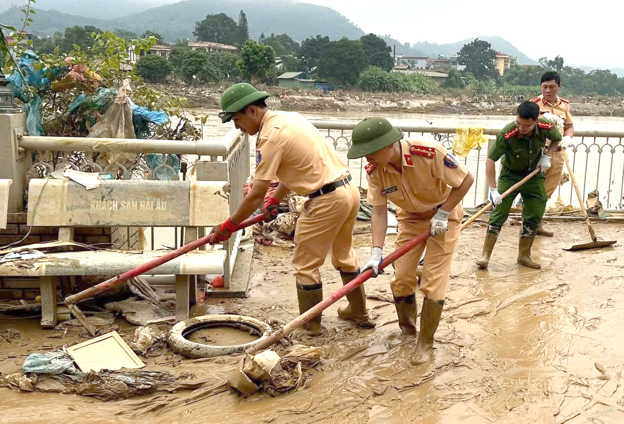 Hình ảnh những chiến sĩ Công an cần mẫn giữa đống bùn đất giúp dân dọn dẹp, khôi phục môi trường đã để lại ấn tượng sâu sắc trong lòng người dân