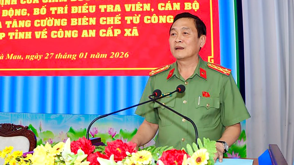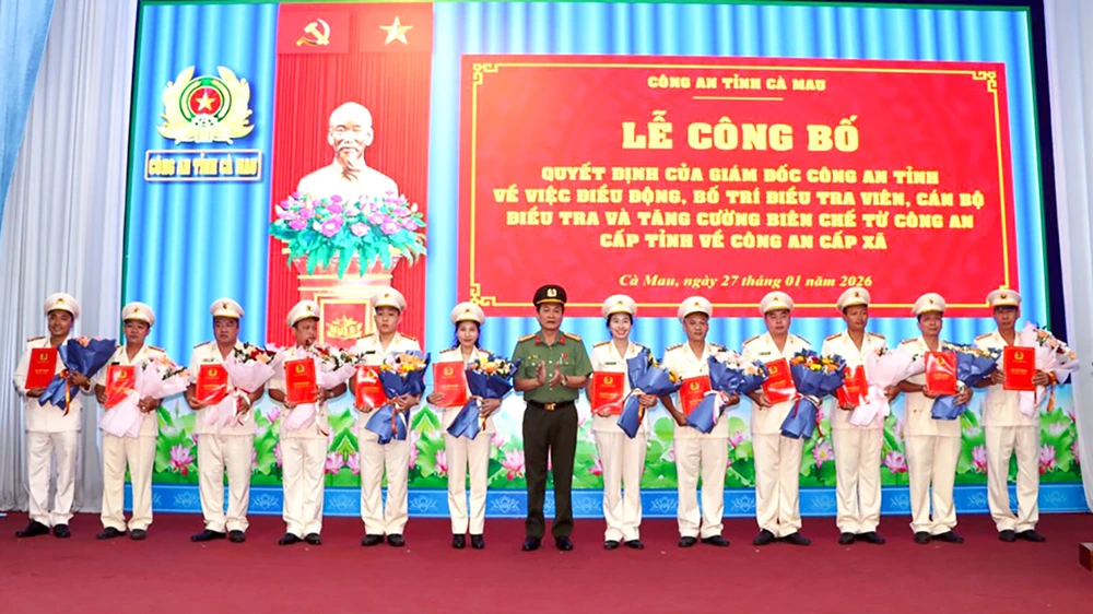 Công an tỉnh Cà Mau vừa tổ chức lễ công bố quyết định điều động, bố trí hơn 100 điều tra viên, cán bộ điều tra và cán bộ đang công tác tại các đơn vị Công an cấp phòng về tăng cường cho Công an cấp xã.