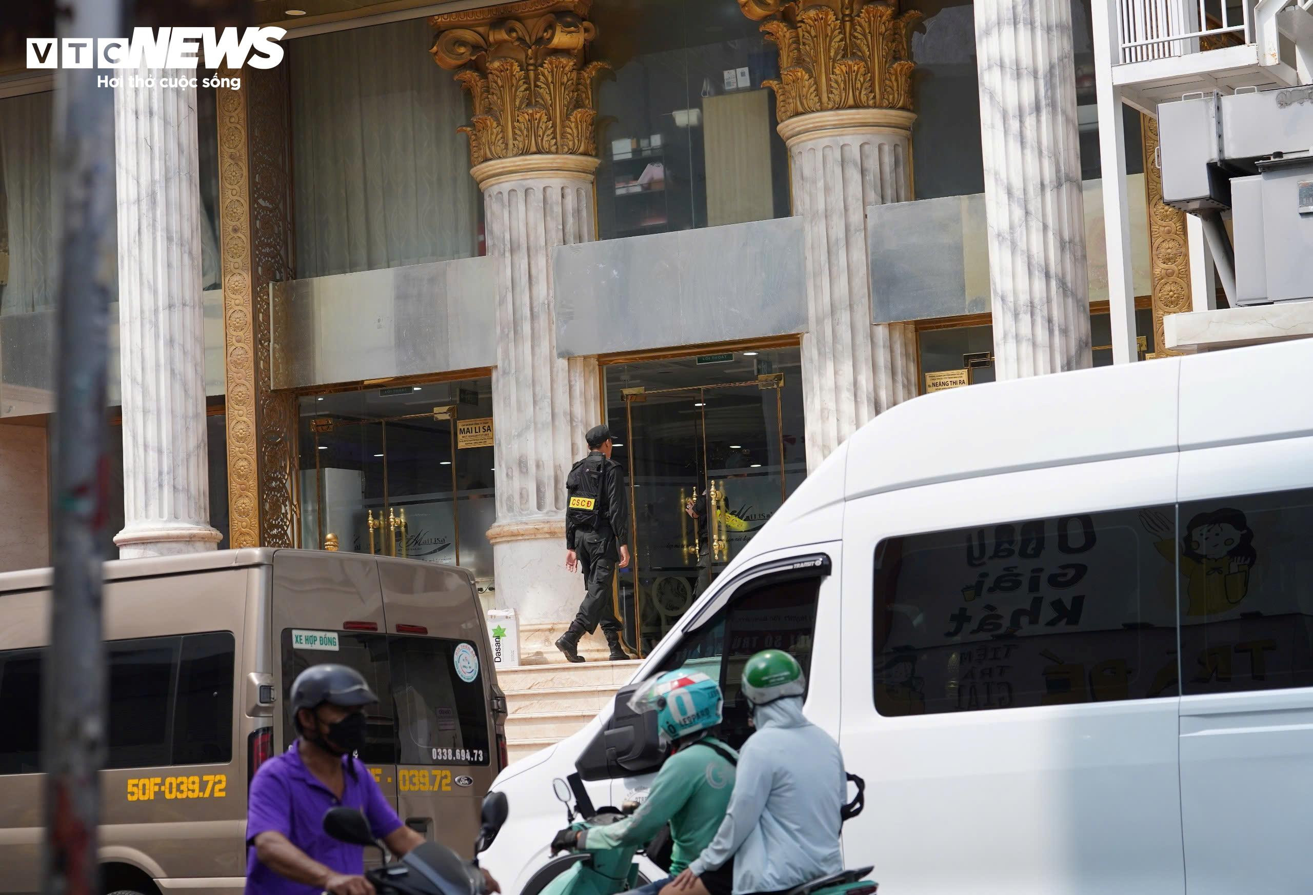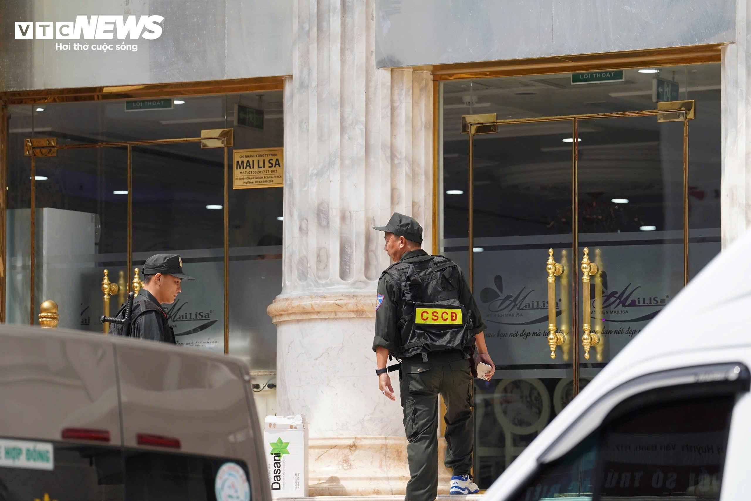 Đến 11h, lực lượng chức năng vẫn đang làm việc bên trong thẩm mỹ viện. Phía bên ngoài, cảnh sát cơ động bảo vệ nghiêm ngặt.