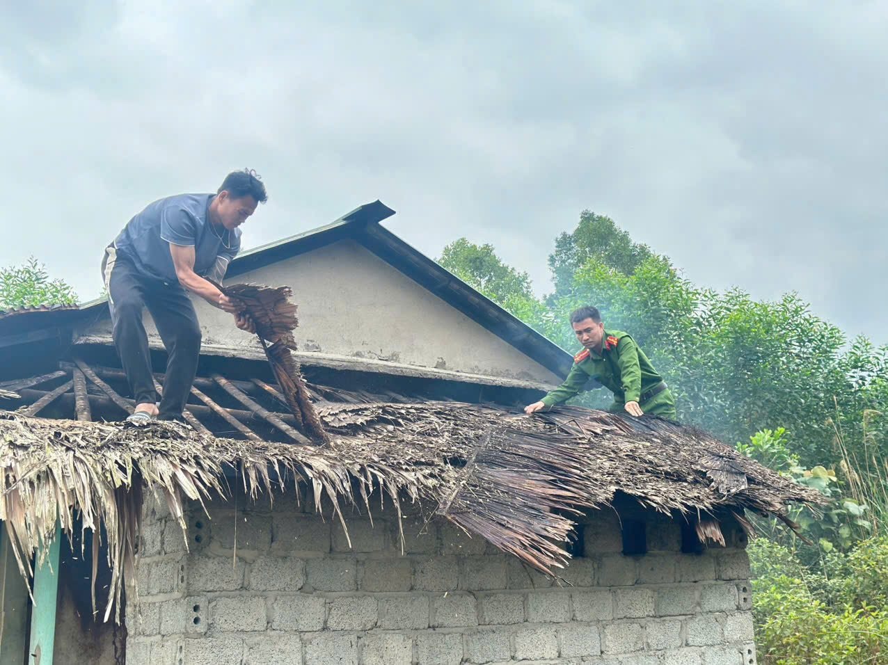 Không quản ngại bùn đất hay lấm lem quần áo, các chiến sĩ cẩn thận thay từng tấm tôn mới, siết lại từng con ốc và gia cố những điểm hư hỏng. Người quét dọn, người sơn tường, mỗi người một tay để "gỡ đi nỗi lo" đè nặng lên vai cụ già gần 80 tuổi. Đứng trước mái nhà mới khô ráo và sáng sủa, ông Vi Văn Sao nghẹn ngào chia sẻ rằng trước đây mỗi khi mưa xuống, ông phải thức trắng đêm canh dột, nay được các đồng chí công an giúp đỡ, mái nhà vững chãi đã giúp lòng ông nhẹ đi rất nhiều.