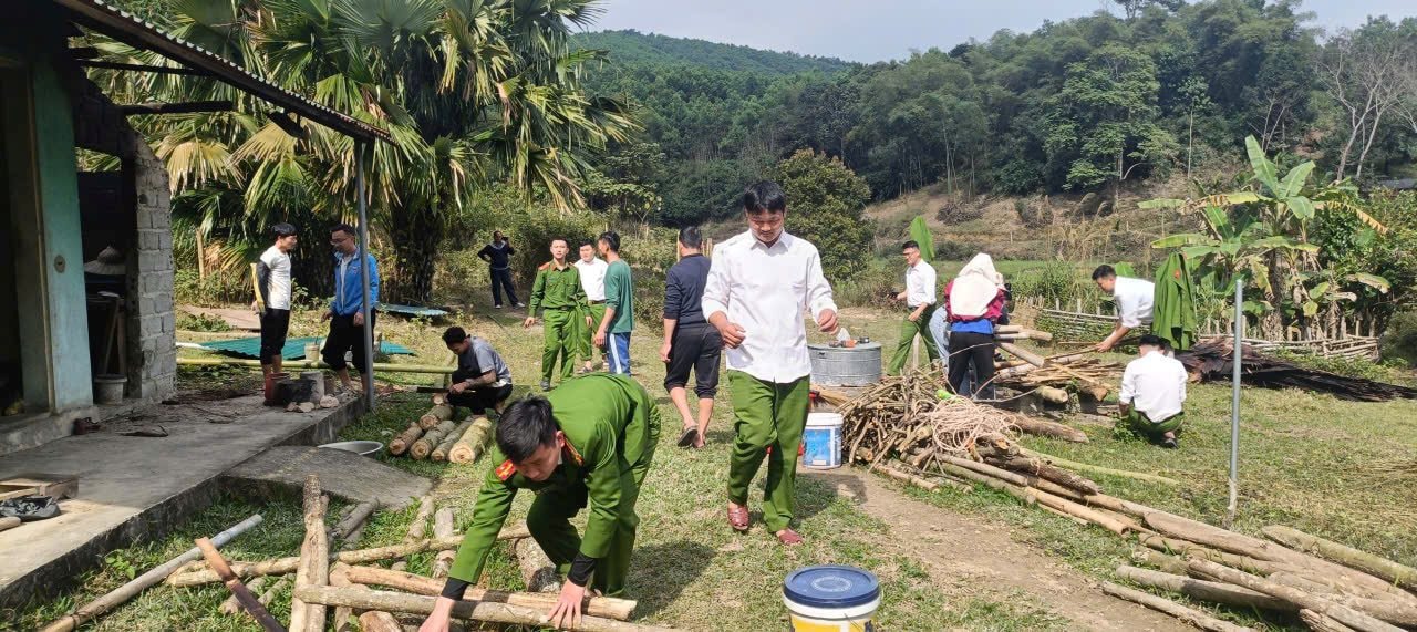 Công an xã Xuân Chinh sửa lại nhà cho gia đình ông Vi Văn Sao ở thôn Thông.