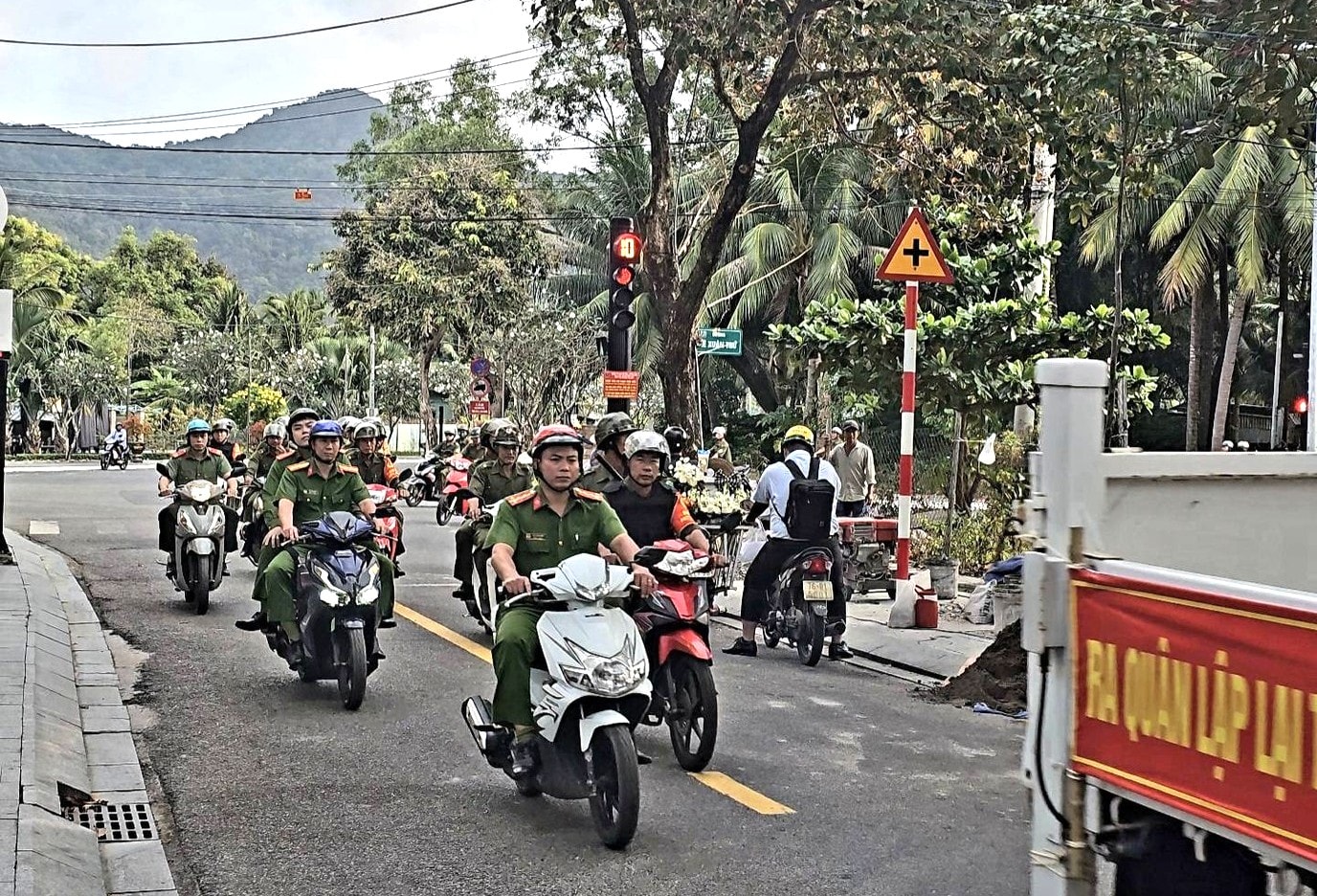 Công an Đặc khu Côn Đảo ra quân kiểm tra, xử lý vi phạm trật tự đô thị. Ảnh: V.Quang.