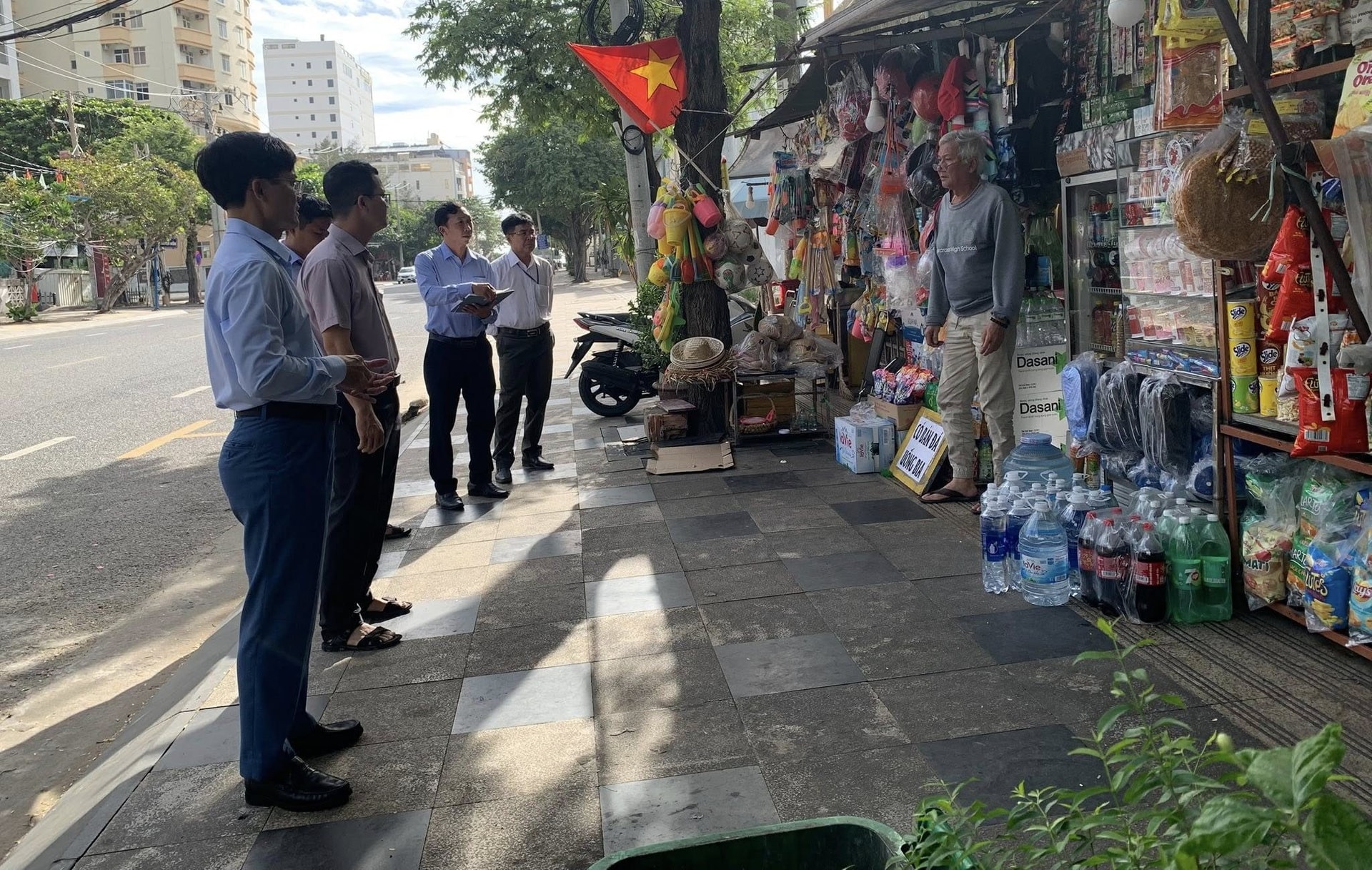 Chính quyền và Công an phường Vũng Tàu thường xuyên kiểm tra việc tuân thủ quy định sử dụng vỉa hè, lòng đường trên địa bàn. Ảnh: C.Linh.