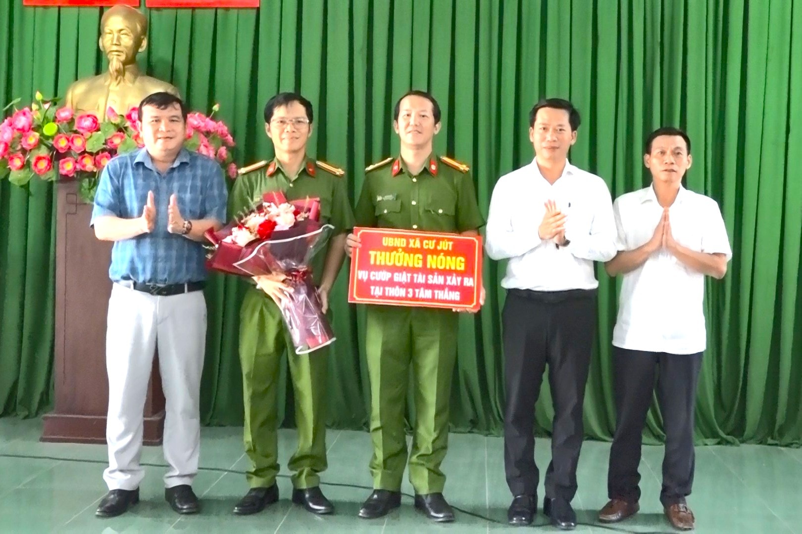 Ghi nhận thành tích phá án nhanh chóng, đồng chí Ngô Quốc Phong, Chủ tịch UBND xã Cư Jút đã biểu dương, khen thưởng các cá nhân và tập thể có thành tích xuất sắc trong quá trình điều tra, khám phá vụ án.