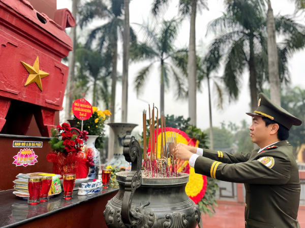 Trong không khí trang nghiêm, thành kính, lãnh đạo và CBCS Công an cửa khẩu Cảng hàng không quốc tế Nội Bài đã đặt vòng hoa, dâng hương và dành phút mặc niệm tưởng nhớ, tri ân sâu sắc công lao to lớn của các Anh hùng liệt sĩ đã anh dũng hy sinh vì sự nghiệp đấu tranh giải phóng dân tộc, bảo vệ Tổ quốc, vì độc lập, tự do, hạnh phúc và cuộc sống bình yên của nhân dân.