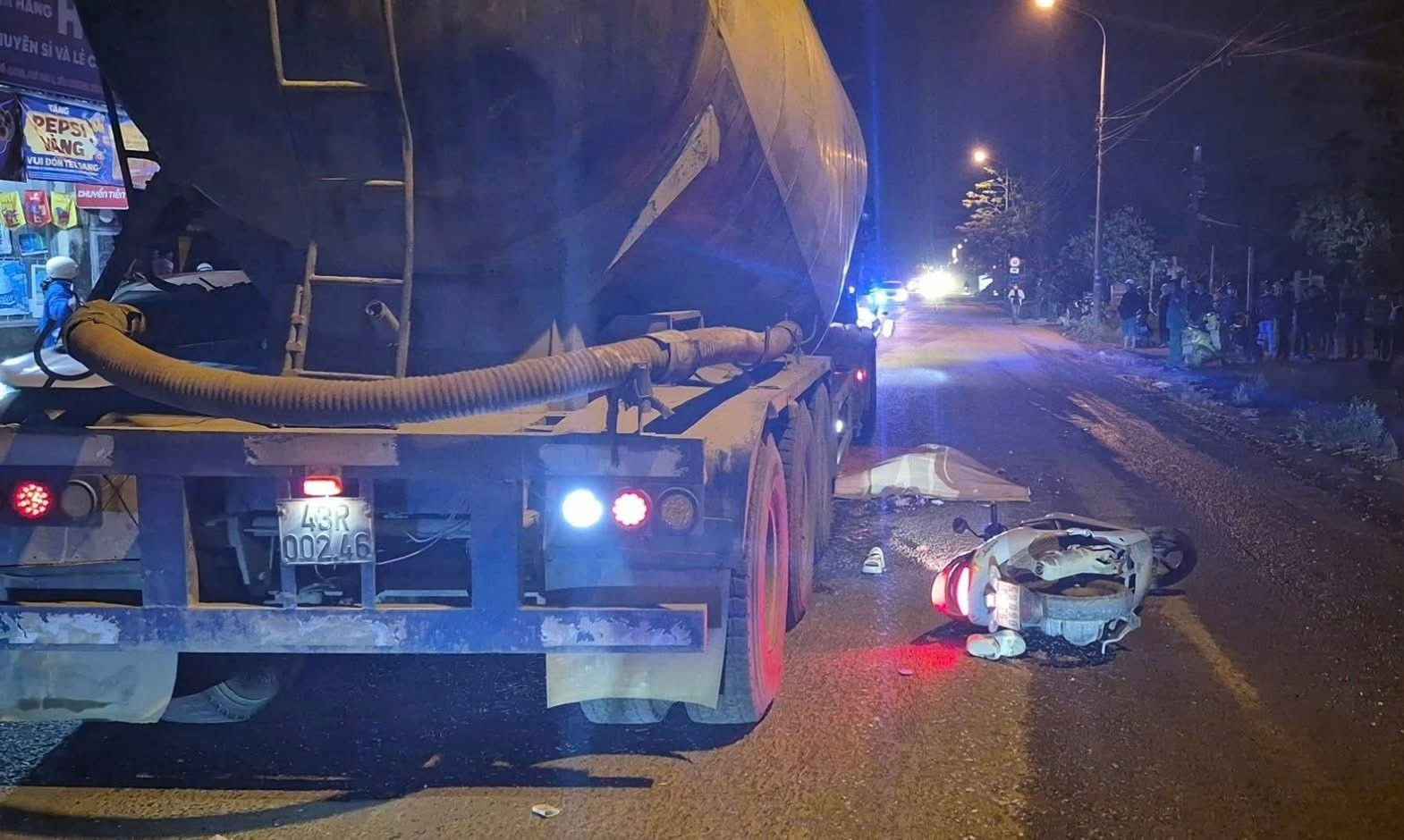 Khi đến đoạn qua thôn Phú Sơn 1, xã Hòa Tiến, xe máy va chạm xe đầu kéo BKS 43C-058.38, kéo theo sơ mi rơmoóc BKS 43R-002.46, do anh Nguyễn Quang Hùng (SN 1983, trú 519 Núi Thành, phường Hòa Cường, TP Đà Nẵng) cầm lái, chạy cùng chiều.
