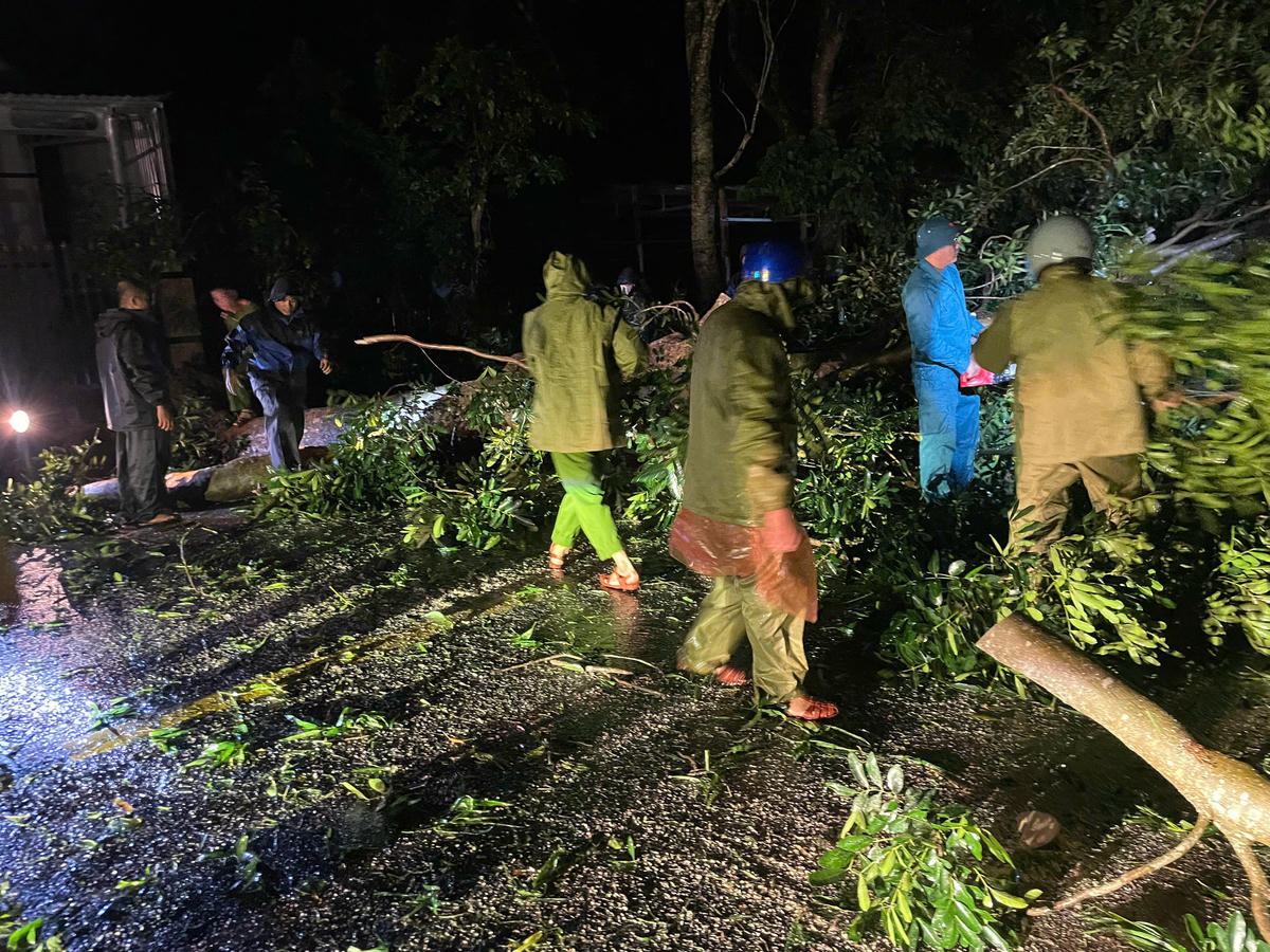 Giữa cơn mưa xối xả, các cán bộ, chiến sĩ lội bùn, phát dọn hàng ngàn cây ngã đổ, giải tỏa ách tắc trên các tuyến đường huyết mạch, đảm bảo cho phương tiện cứu trợ và người dân di chuyển an toàn. Nhiều tổ công tác kịp thời cứu hộ, di dời hàng chục hộ dân có nhà bị sập, tốc mái đến nơi an toàn.
