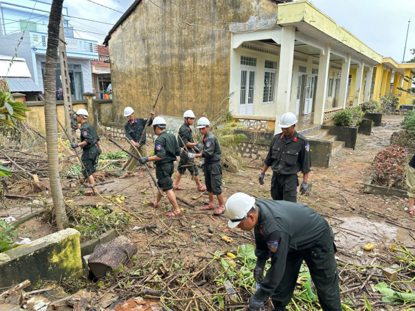 Từ địa bàn miền núi, Trung tá Võ Duy Phú, Đội trưởng Cảnh sát bảo vệ mục tiêu, Phòng CSCĐ Công an tỉnh Đắk Lắk cho biết, tổ công tác do anh chỉ huy gồm 45 CBCS ngược lên xã Đồng Xuân giúp dân và chính quyền địa phương khắc phục hậu quả lũ lụt từ sáng 22/11. Bốn ngày qua đã thu dọn rác bẩn, bùn đất, cây cối bị lũ cuốn xô dạt trên các tuyến giao thông với tổng chiều dài khoảng 3km; xử lý vệ sinh, tẩy rửa sân trường, phòng học,bàn ghế tại 3 trường học, 2 nhà sinh hoạt cộng đồng và 8 căn nhà người dân. Bên cạnh đó, tổ công tác còn phối hợp Công an, chính quyền xã Đồng Xuân chuyển tải 40 tấn gạo, 20 tấn nhu yếu phẩm từ các nguồn cứu trợ đến tay người dân ở các thôn xóm.