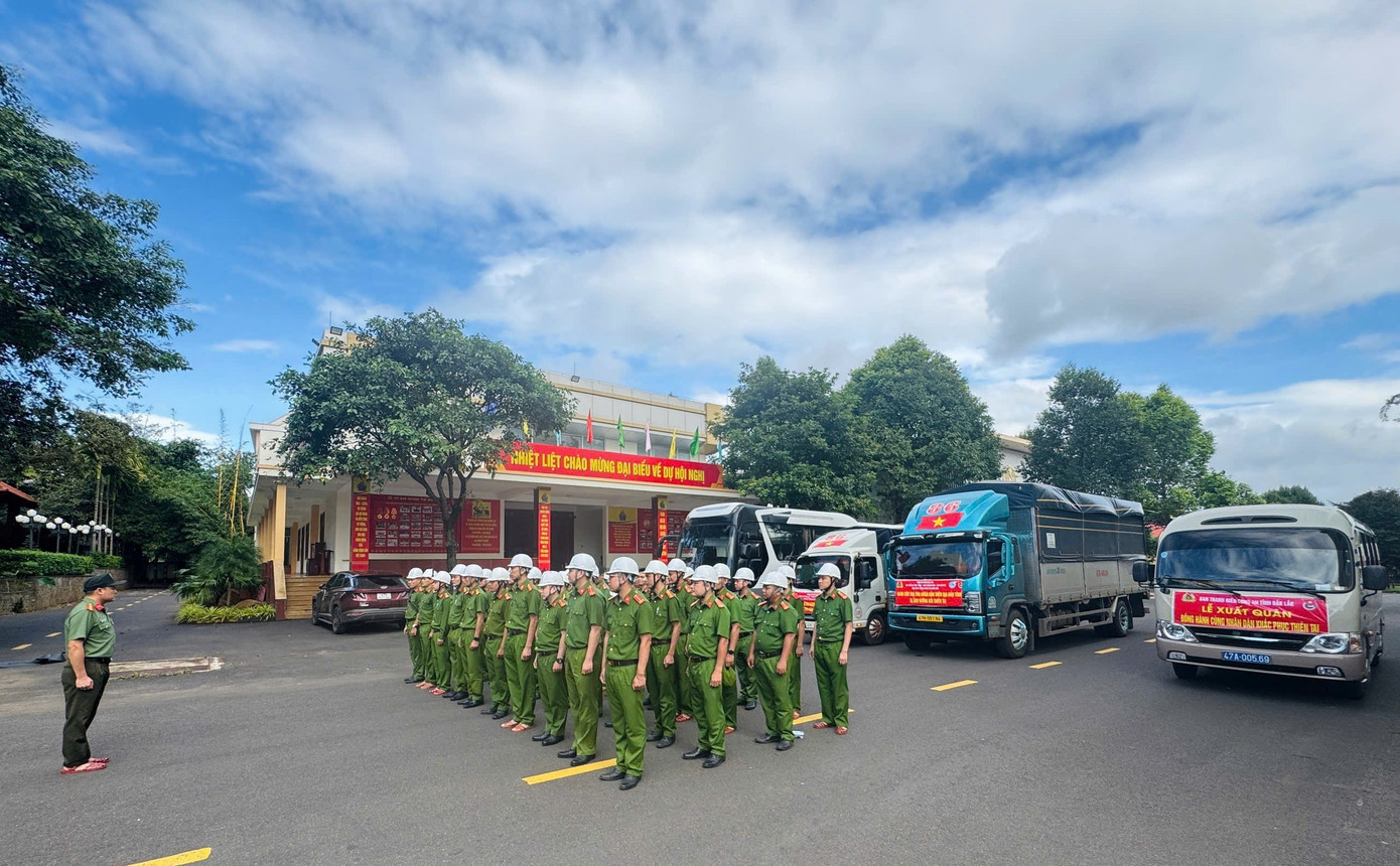 Đến chiều 23/11, Ban Thanh niên Công an tỉnh Đắk Lắk đã xuất quân với 170 cán bộ, chiến sĩ và đoàn viên thanh niên của các đơn vị. Lực lượng được chia thành 2 tổ, phối hợp với các đơn vị liên quan và sinh viên các trường đại học để vệ sinh môi trường, dọn dẹp bùn đất tại các khu vực bị ảnh hưởng nặng. Đoàn công tác mang theo 2 xe hàng, tổng cộng 20 tấn nhu yếu phẩm để hỗ trợ người dân vùng lũ.