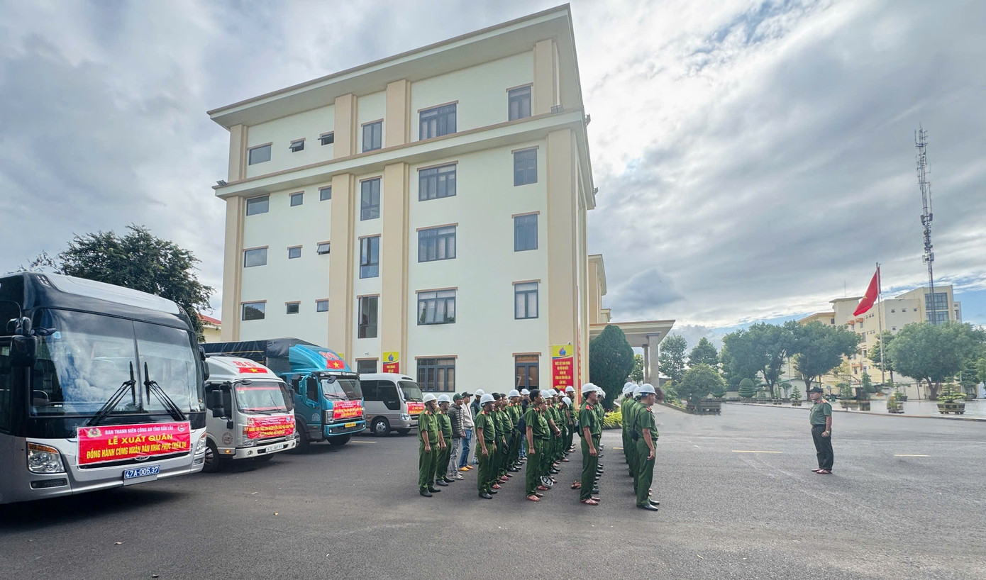 Chuyến xe chở các cán bộ, chiến sĩ công an lên đường làm nhiệm vụ.