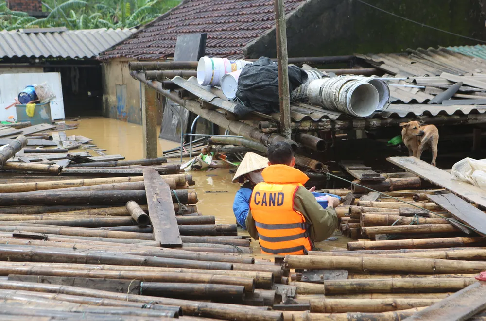 Trong suốt hai ngày qua, nhiều gia đình bị cô lập sâu trong lũ đã được hàng ngàn lượt cán bộ chiến sĩ Công an, quân đội xuyên đêm, lội mưa dầm mình trong nước lũ mang hàng cứu trợ, đưa người già trẻ em đến nơi an toàn.
