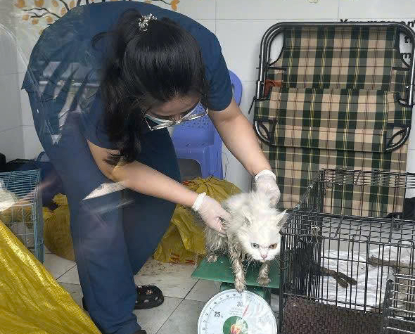 32 con chó, mèo đang được lực lượng chức năng chăm sóc.
