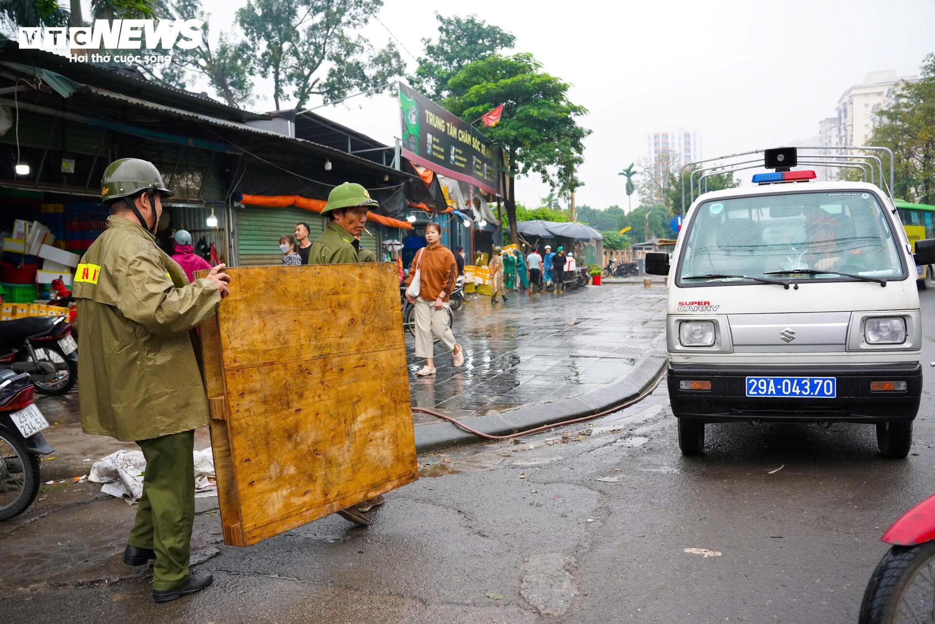 Sau khi lực lượng chức năng kiểm tra, nhiều tiểu thương chủ động thu dọn hàng hóa, không còn bày bán tràn lan như trước.