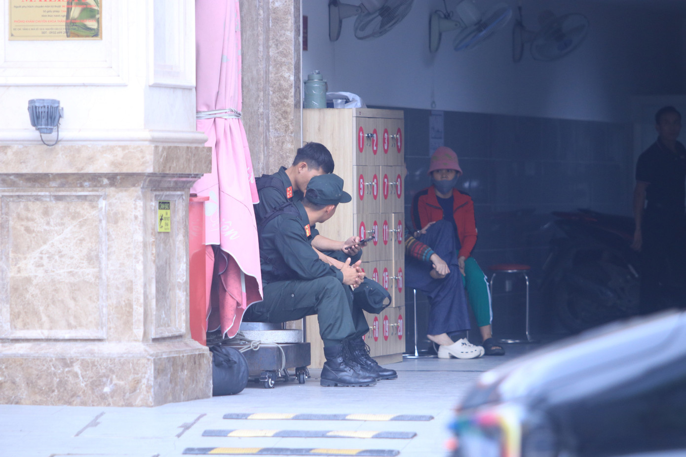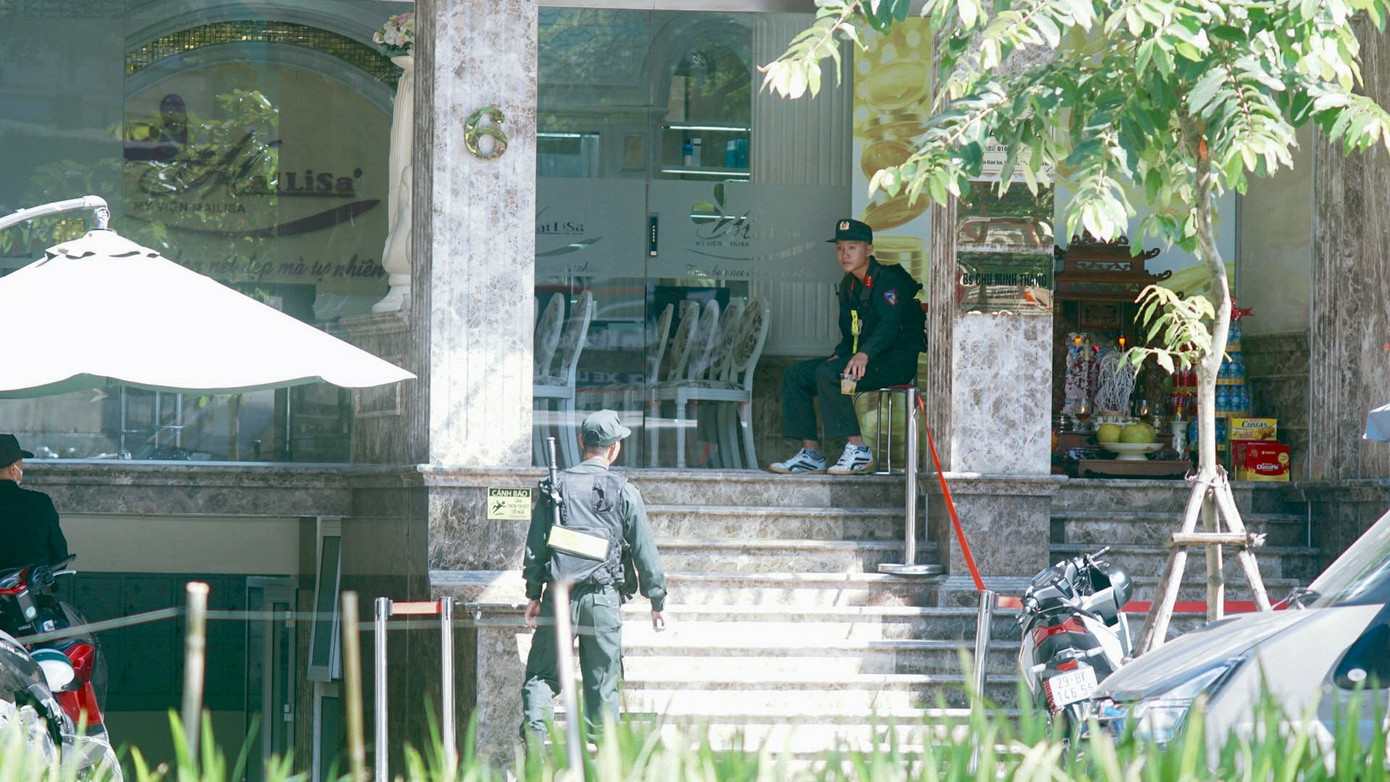 Các cán bộ chiến sĩ Cảnh sát cơ động được tổ chức thành nhiều tốp canh gác, phong tỏa, giữ trật tự phía trước khuôn viên và cổng vào của cơ sở thẩm mỹ này. Nhiều khách hàng đến cơ sở thẩm mỹ này để sử dụng dịch vụ nhưng phải quay về.