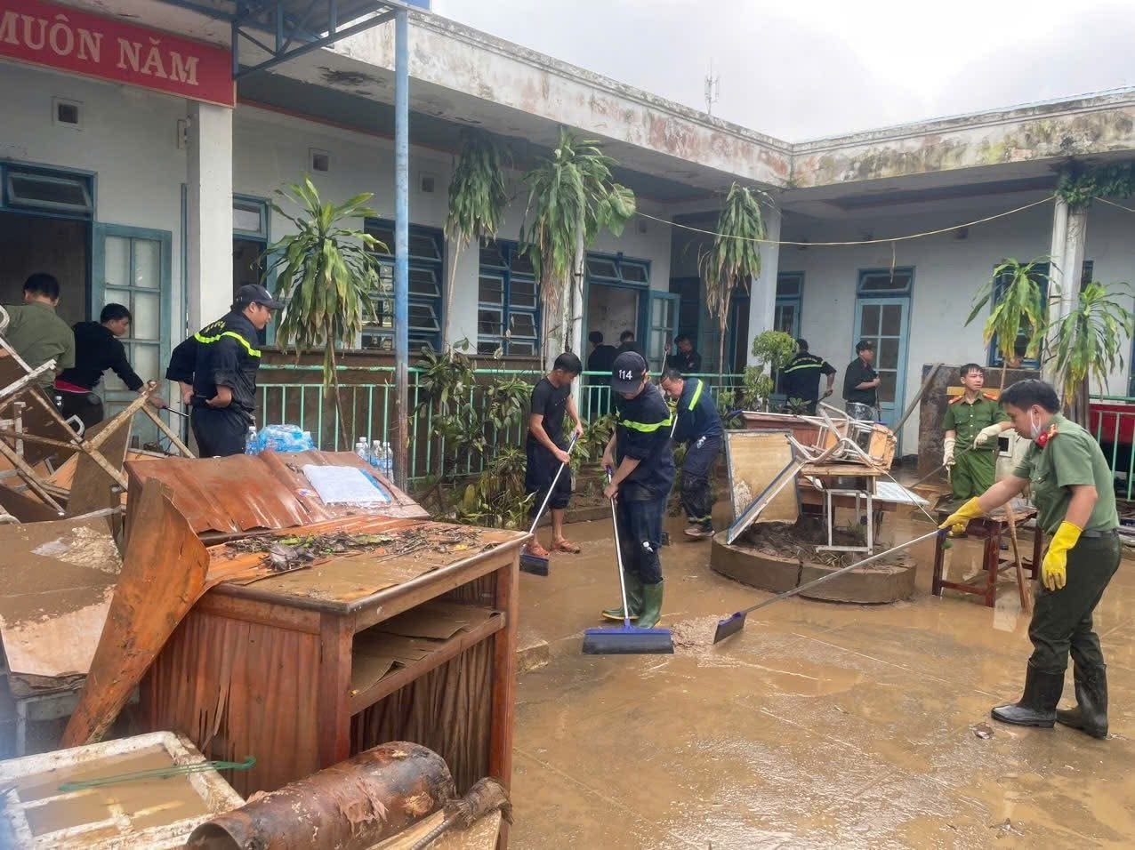 Ở hướng hỗ trợ khác, cán bộ chiến sĩ Phòng Cảnh sát PCCC và CNCH Công an tỉnh Đồng Nai đã phối hợp với lực lượng Công an tỉnh Đắk Lắk, TP. HCM cùng giáo viên địa phương tổ chức dọn dẹp, xịt rửa 7 điểm trường tại các xã Hòa Mỹ, Tây Hòa và Đông Hòa, giúp các trường sớm trở lại hoạt động dạy học.