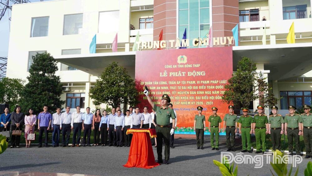 Buổi lễ được tổ chức trực tiếp tại điểm cầu Công an tỉnh, phường Mỹ Phong, tỉnh Đồng Tháp và kết nối trực tuyến đến điểm cầu 102 Công an xã, phường trên địa bàn tỉnh.