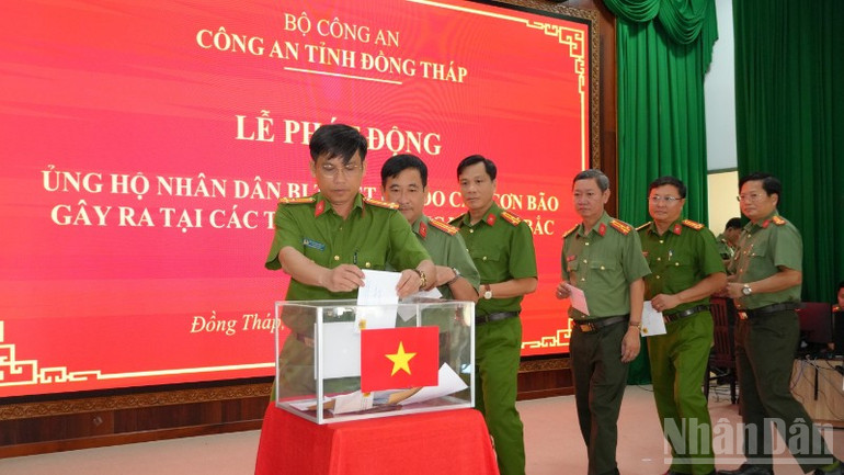 Qua phát động, mỗi cán bộ, chiến sĩ Công an tỉnh Đồng Tháp ủng hộ một ngày lương để chia sẻ với đồng bào bị ảnh hưởng do bão gây ra, với tổng số tiền trên 4 tỷ đồng. Ngoài ra, Ban Giám đốc và lãnh đạo Công an các đơn vị cấp tỉnh Đồng Tháp ủng hộ thêm 37 triệu đồng.