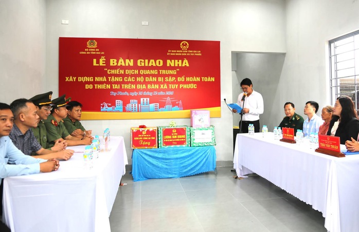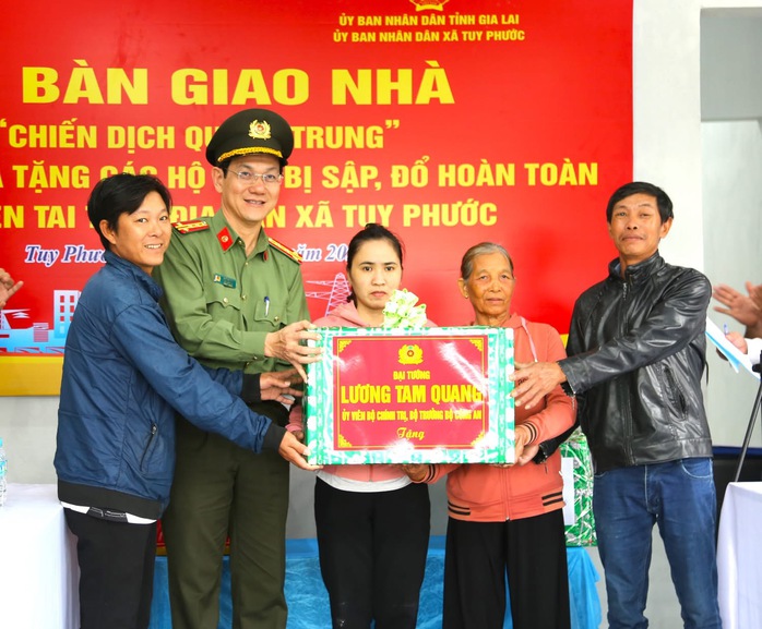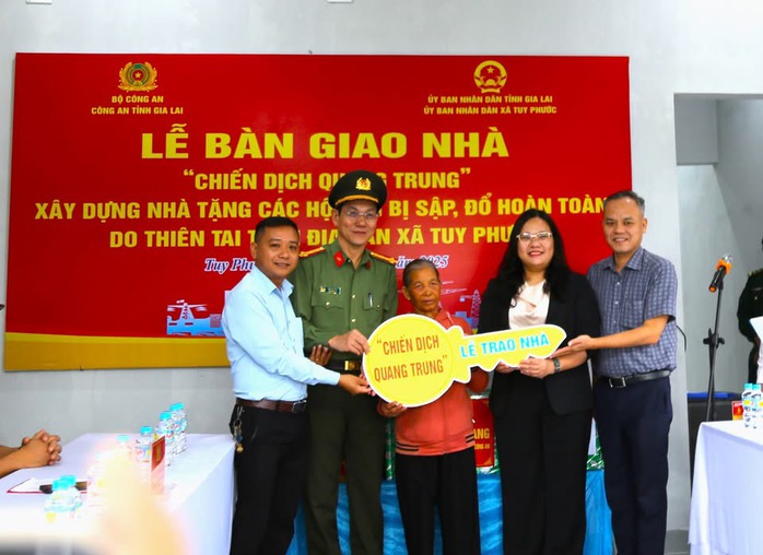Tại xã Tuy Phước, Công an tỉnh Gia Lai phối hợp với chính quyền địa phương tổ chức bàn giao nhà cho bà Lương Thị Mai (73 tuổi, trú thôn Phú Mỹ 2).