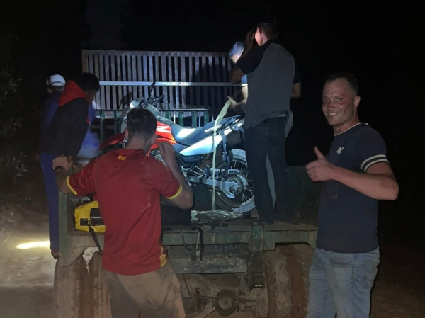Cơ quan chức năng và người dân địa phương thuê xe tải chở xe máy ra khỏi khu vực rừng cho khách du lịch Hà Lan, làm họ rất cảm động.