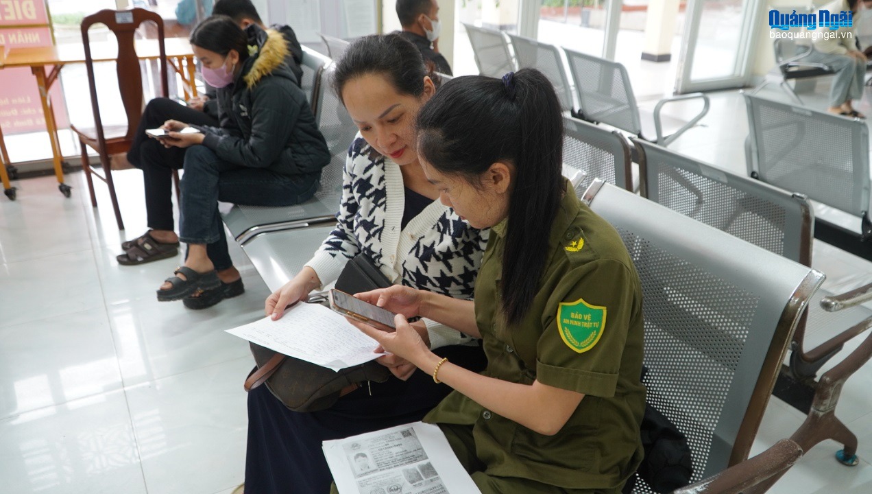 Chị Châu Thị Uyên, ở thôn 4, xã Bình Sơn, được hướng dẫn thực hiện đăng ký tạm trú trực tuyến.