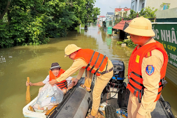 Công an thành phố đã huy động lực lượnCSGT; Cảnh sát PCCC và CNCH triển khai toàn bộ lực lượng, phương tiện có mặt kịp thời tại các vùng ngập lụt để đảm bảo an toàn tính mạng và tài sản cho nhân dân. Lực lượng CSGT cùng xuồng máy và xe tải chuyên dụng phối hợp với chính quyền địa phương, lực lượng quân đội và Công an các xã Đa Phúc, Trung Giã, Thư Lâm hỗ trợ người dân di dời tài sản, phương tiện đến nơi an toàn. Tại nhiều điểm ngập sâu, các chiến sĩ CSGT đã chèo tay, lội nước tiếp cận từng hộ dân, ưu tiên giúp người già, trẻ nhỏ và vận chuyển đồ đạc, phương tiện.