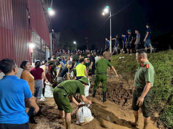 Đêm 8/10, tại xã Đa Phúc, nước sông Cầu dâng cao, tràn qua tuyến đê bao khu vực Trạm bơm tiêu Tăng Long, đe dọa an toàn tuyến đê, nhất là tại các điểm xung yếu. Công an xã Đa Phúc đã huy động 100% quân số, phối hợp với lực lượng thủy lợi, dân quân, bộ đội gia cố khẩn cấp đê, đặt bao tải đất, chèn tải, chiếu sáng đêm để kịp thời ứng phó.