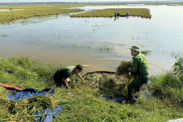Trước diễn biến phức tạp của mưa lũ, sáng ngày 9/10, lực lượng Cảnh sát cơ động đã phối hợp với Công an xã Trung Giã và Đa Phúc giúp nhân dân thu hoạch, cắt lúa bị ngập úng, vận chuyển nông sản về khu khô ráo, góp phần giảm thiểu thiệt hại sau mưa lũ. Song song đó, các tổ công tác vẫn theo dõi mực nước sông, kiểm tra mái đê, phối hợp cùng chính quyền bảo đảm an ninh trật tự, sẵn sàng phương án sơ tán dân nếu tình huống xấu xảy ra.