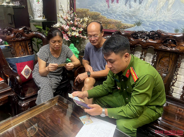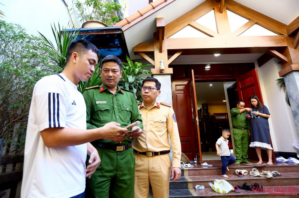 Cán bộ CSGT Hà Nội cùng với Công an xã Mê Linh xuống từng hộ dân tuyên truyền, hướng dẫn làm sạch dữ liệu đăng ký phương tiện, giấy phép lái xe.