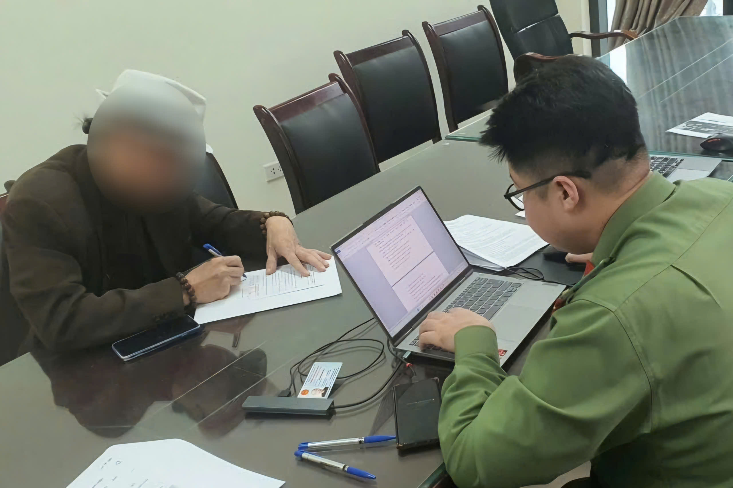 Cơ quan Công an làm việc với ông N.M.H (Ảnh: Công an TP Hà Nội)