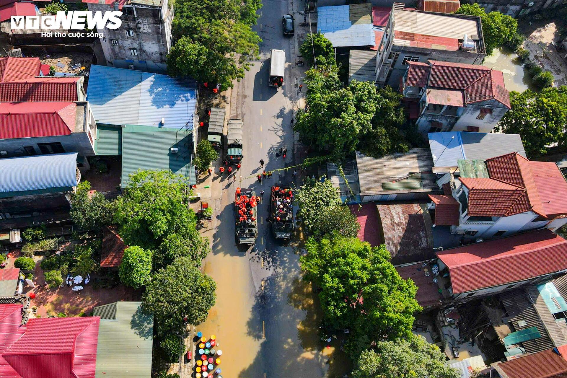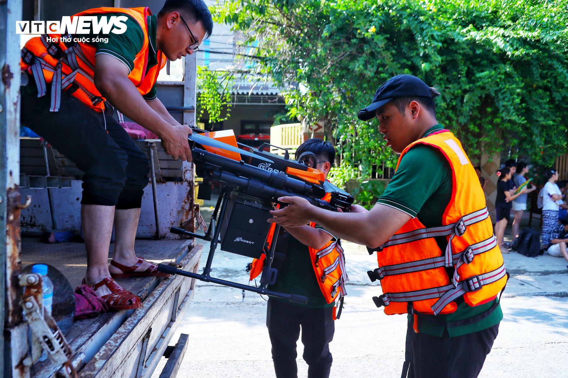 Đại tá Nguyễn Tiến Đạt – Phó Giám đốc Công an TP Hà Nội – cho biết, Bộ Công an đã tăng cường thêm nhiều thiết bị chuyên dụng, trong đó có drone (máy bay không người lái) để tiếp tế nhu yếu phẩm và kiểm tra khu vực bị cô lập. Ba xe đặc chủng lội nước cũng được huy động để hỗ trợ người dân di chuyển qua vùng ngập sâu và vận chuyển hàng cứu trợ.