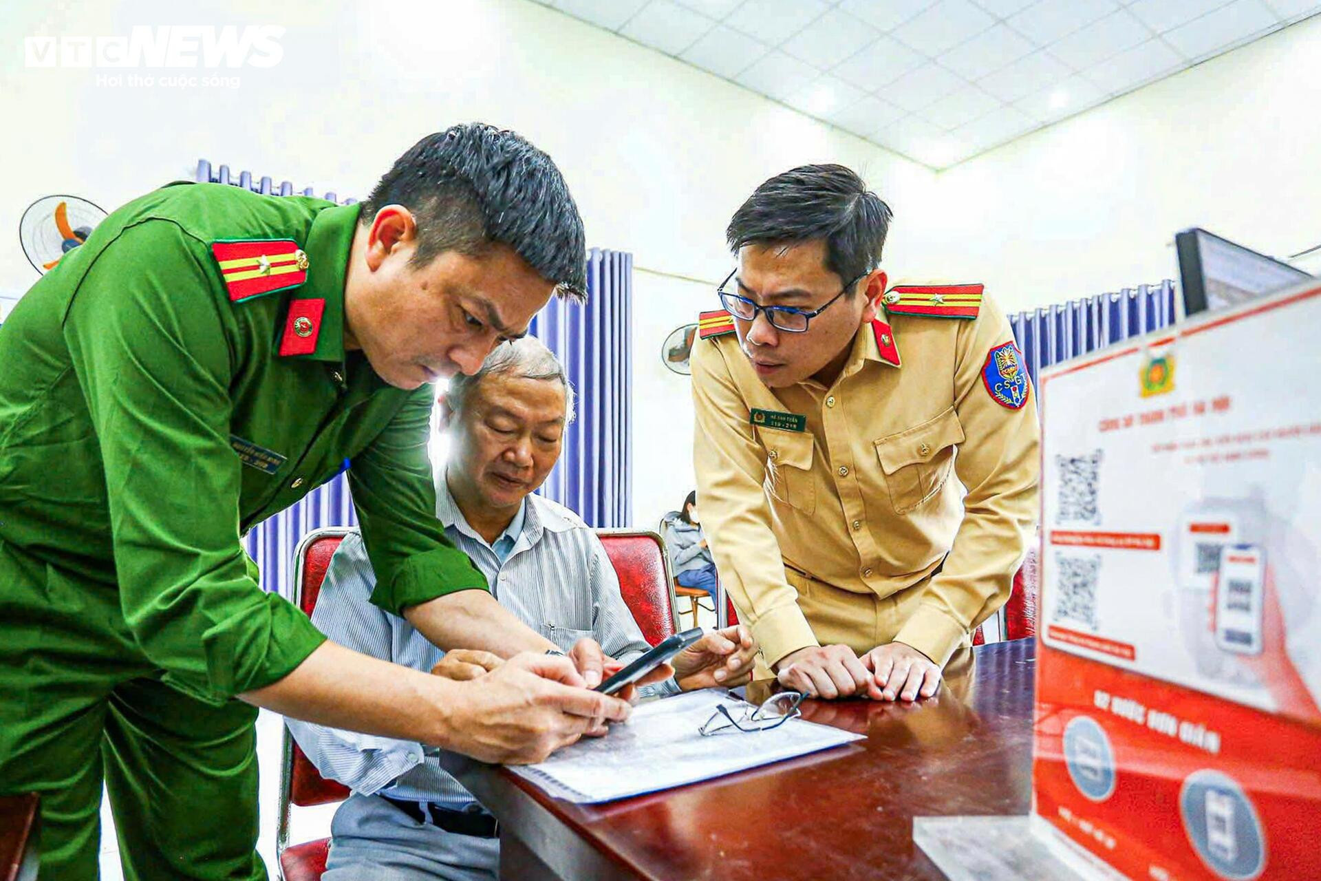 Để đảm bảo hiệu quả, lực lượng chức năng trực tiếp đến từng hộ dân hướng dẫn cập nhật và làm sạch dữ liệu đăng ký phương tiện cùng giấy phép lái xe.