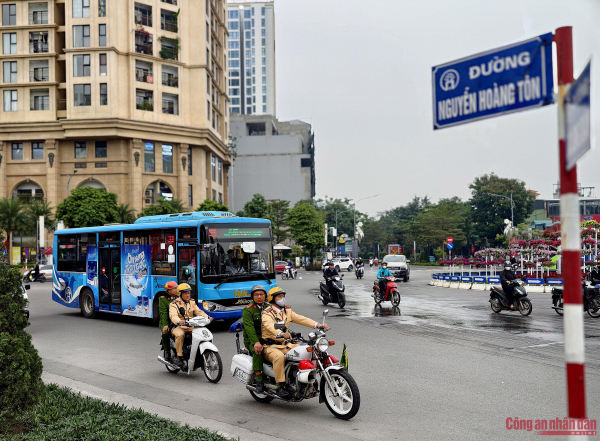 Đội CSGT số 2 phối hợp cùng Công an phường Tây Hồ khảo sát, triển khai phương án phân luồng và đảm bảo trật tự đô thị tại khu vực vườn hoa Lạc Long Quân