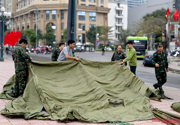 Bên trong khu vực bảo vệ, lực lượng Quân đội đang tiến hành công tác chuẩn bị cho đêm giao thừa bắn pháo hoa.