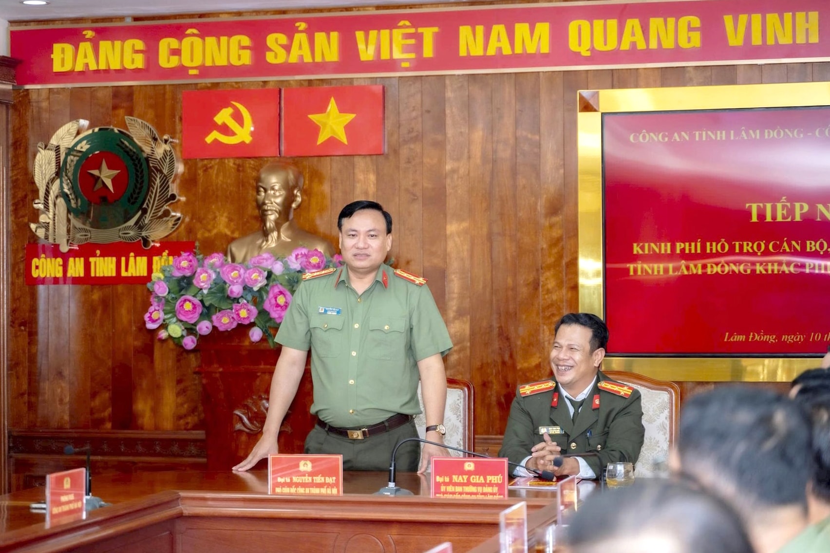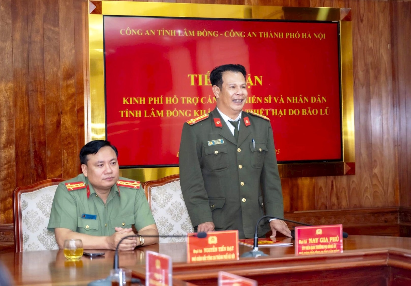 Buổi gặp gỡ nằm trong chương trình công tác hỗ trợ đồng bào bị ảnh hưởng lũ lụt thiên tai do Đại tá Nguyễn Tiến Đạt, Phó Giám đốc Thành phố Hà Nội làm trưởng đoàn. Đón tiếp đoàn có Đại tá Nay Gia Phú, Phó Giám đốc Công an tỉnh Lâm Đồng.