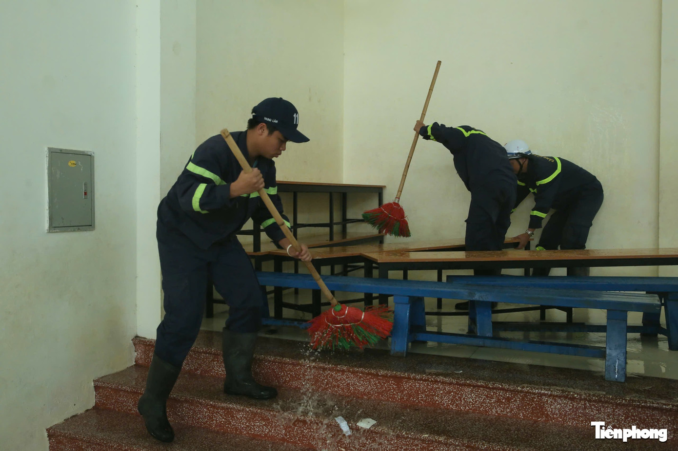 Ban chỉ huy Phòng Hậu cần và Phòng Cảnh sát PCCC&CNCH Công an TP Hà Nội huy động 80 cán bộ, chiến sĩ, 1 xe chữa cháy cùng 6 máy bơm công suất lớn để bơm nước, dọn rửa khuôn viên và vệ sinh toàn bộ trang thiết bị giảng dạy. Trong thời gian ngập, nhà trường cho học sinh nghỉ học 3 ngày.