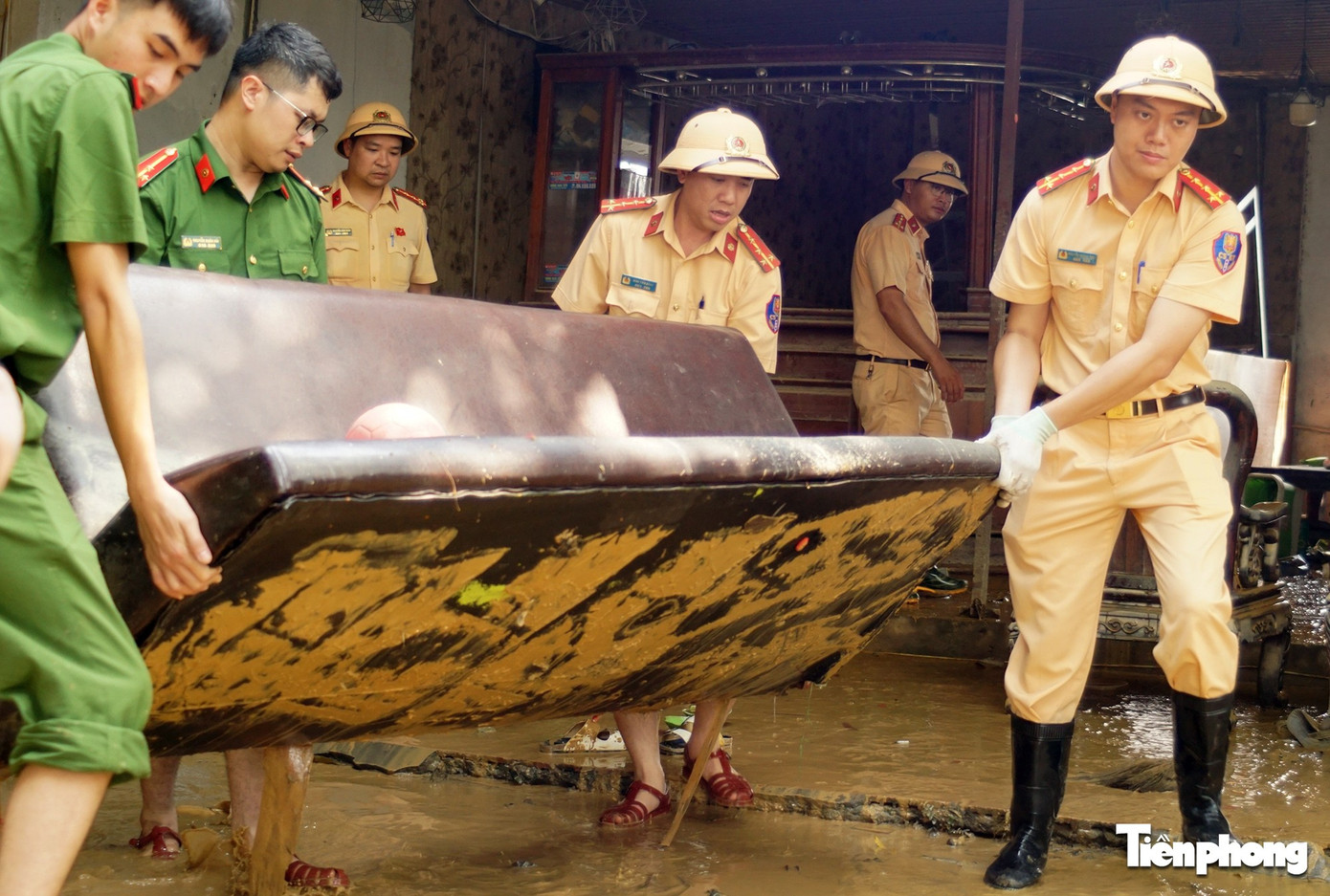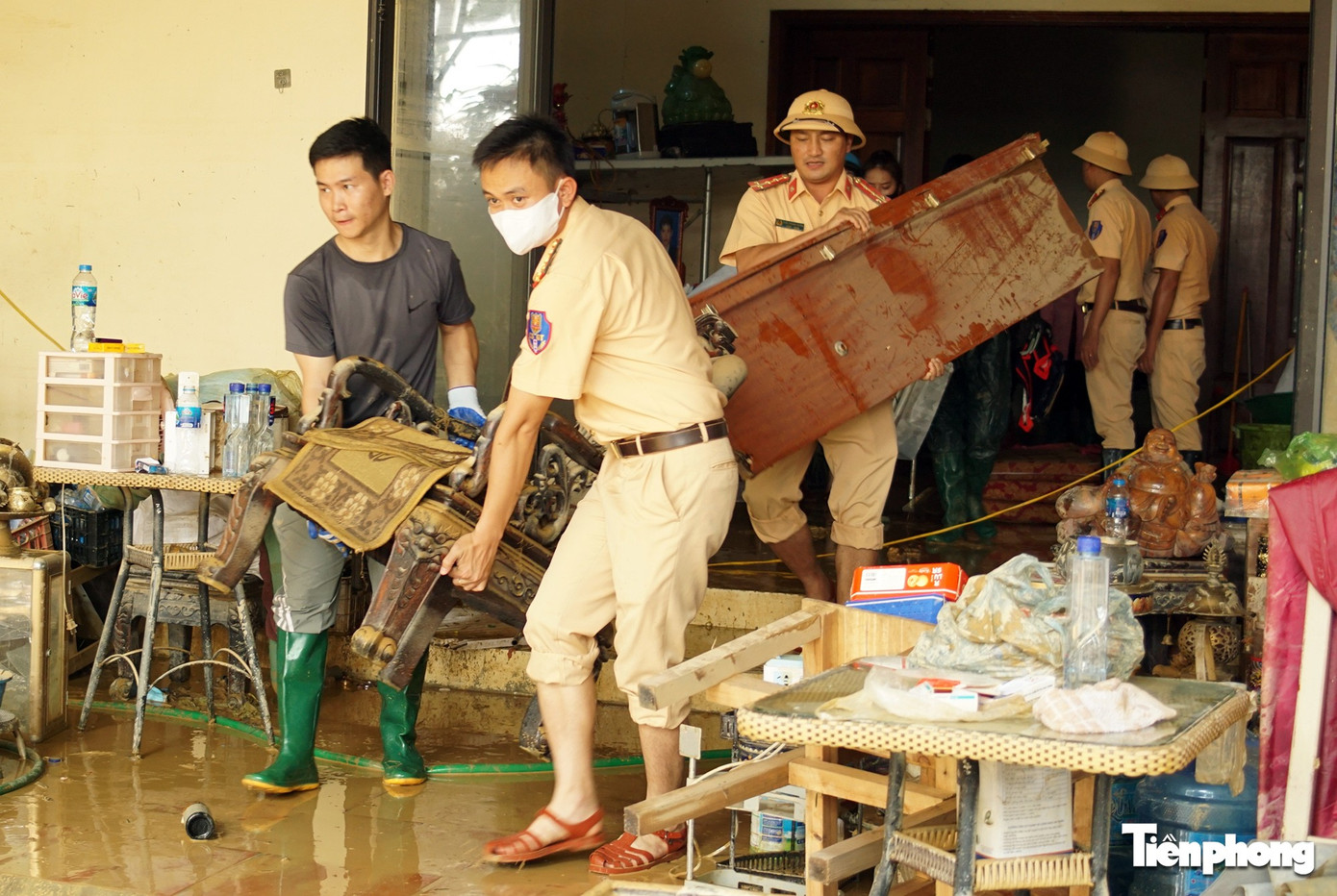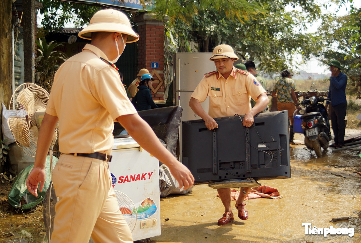 Tại khu vực phố Nỷ, nhiều ngôi nhà bị ngập sâu, khiến đồ đạc bên trong hư hỏng nặng. Trong sáng cùng ngày, lực lượng Cảnh sát giao thông và công an địa phương đã có mặt hỗ trợ người dân vận chuyển đồ đạc ra ngoài sau khi nước rút.