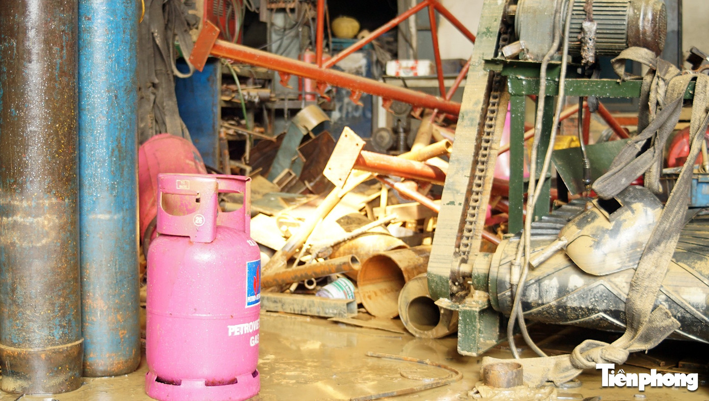 Kế bên nhà chị Luyến là xưởng cơ khí với hàng chục máy móc bị ngập trong nước. Ông Đỗ Văn Toàn - công nhân xưởng nói, thời điểm nước dâng lên nhanh, đỉnh điểm cao hơn 2m, không thể di chuyển được đồ đạc.