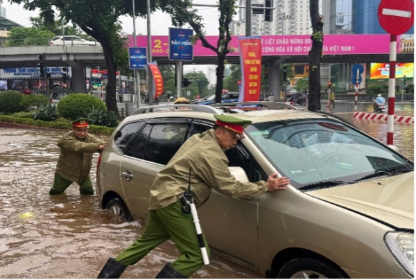 Công an Hà Nội: Huy động lực lượng giúp dân trong cơn mưa lớn trên đường phố