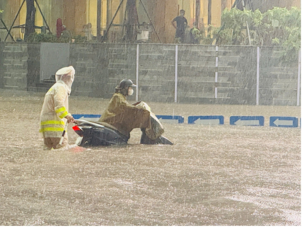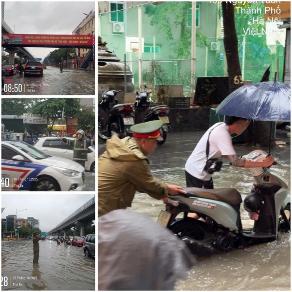 Khoảng 10h sáng 7/10, tại khu vực nút giao Tú Mỡ - Phạm Hùng (phường Yên Hòa, Hà Nội), nước ngập khoảng 30cm, nhiều người dân khi đi qua có biểu hiện tê chân tay, thậm chí có người ngã khụy, nghi do bị ảnh hưởng bởi dòng điện rò rỉ dưới nước. Phát hiện sự việc, tổ công tác Đội CSGT đường bộ số 6, Phòng CSGT Công an TP Hà Nội đang làm nhiệm vụ tại khu vực đã nhanh chóng liên hệ với đơn vị điện lực, phối hợp kiểm tra và khắc phục kịp thời, bảo đảm an toàn cho người dân và phương tiện qua lại.