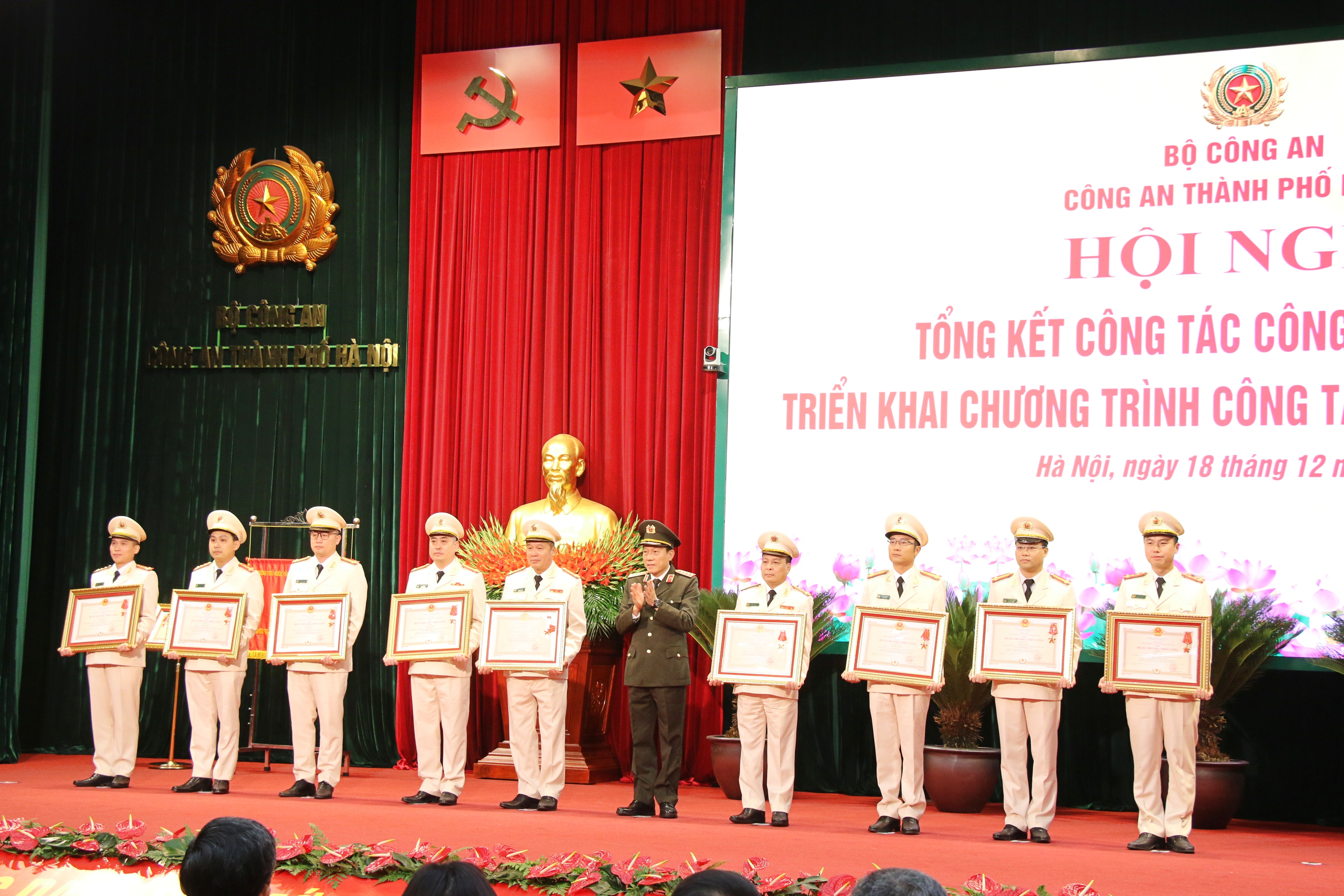 Nhân dịp này, thừa ủy quyền của Chủ tịch nước, Bộ trưởng Bộ Công an đã trao Huân chương Chiến công cho 9 cá nhân tiêu biểu của Công an TP. Hà Nội; tặng Cờ thi đua của Bộ Công an cho 20 tập thể thuộc Công an thành phố. Lãnh đạo thành phố Hà Nội cũng tặng Bằng khen của UBND Thành phố cho 26 tập thể.
