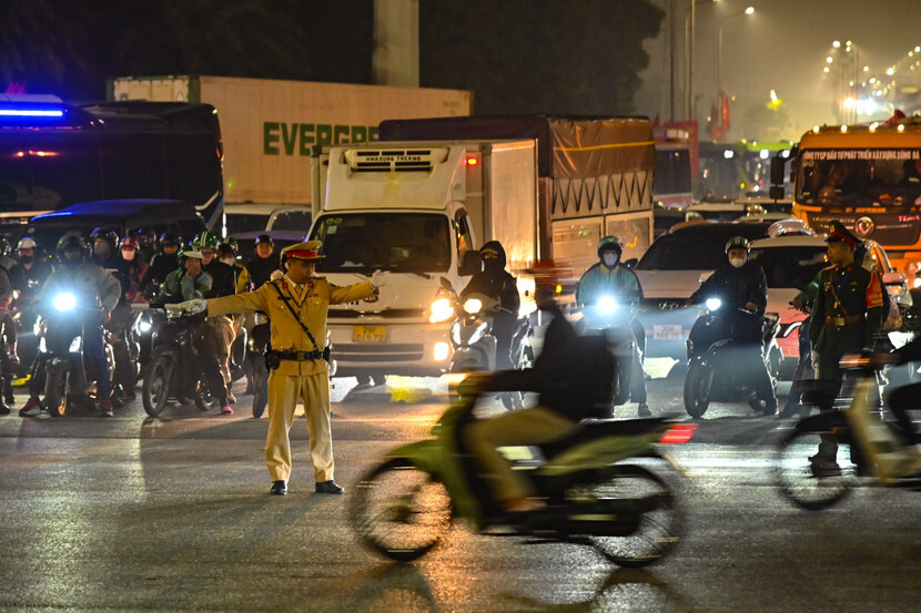 Sau khi đoàn xe đưa các đại biểu vào Trung tâm hội nghị Quốc gia, các lực lượng Công an Thủ đô tập trung phân luồng, giảm thiểu ùn tắc giao thông.