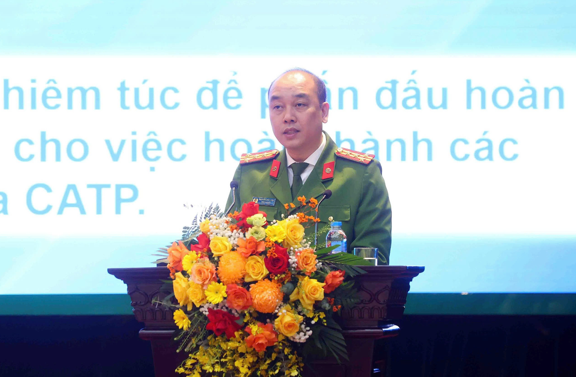 Trung tướng Nguyễn Thanh Tùng, Giám đốc Công an TP. Hà Nội phát biểu chỉ đạo tại hội nghị.