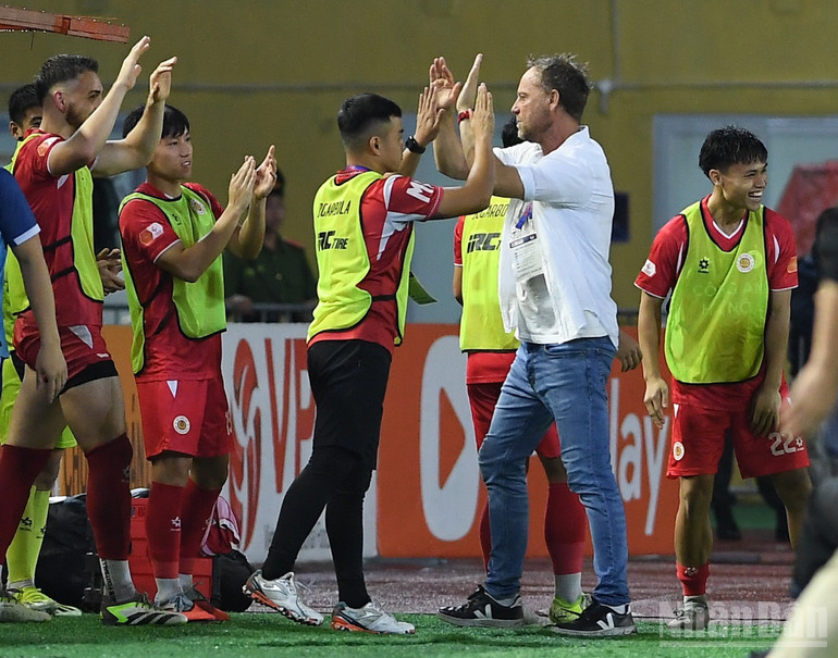 Với chiến thắng trước PVF-Công an nhân dân, Công an Hà Nội bám sát ngôi đầu của Ninh Bình. (Ảnh: TRẦN HẢI)