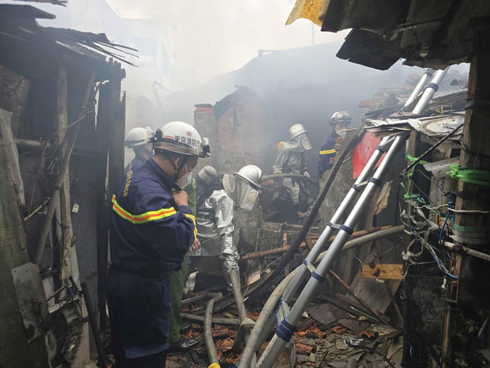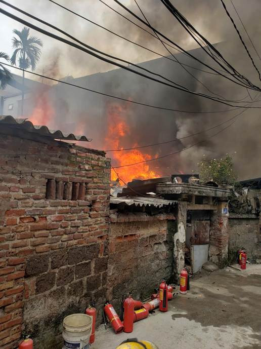 Khi lực lượng chữa cháy có mặt tại hiện trường, đám cháy đã phát triển gần 30 phút, dẫn đến ngọn lửa đã bao trùm toàn bộ ngôi nhà 1 tầng có kết cấu tạm (tường gạch lửng, thưng tôn), diện tích khoảng 100m² được sử dụng làm nơi để củi khô, phế liệu và đồ dùng sinh hoạt.