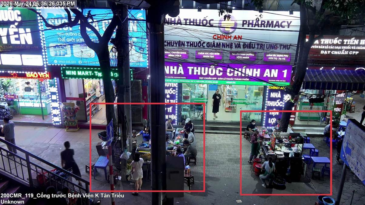 Việc sử dụng trái phép vỉa hè để bày bán hàng hóa vào ban đêm cũng đã được phát hiện và xử lý kịp thời nhờ hệ thống camera tại số 1 Cầu Bươu (phường Kiến Hưng).