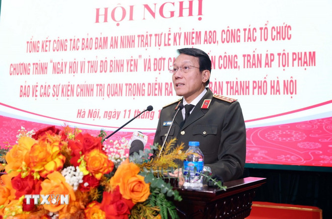Tại hội nghị, Đại tướng Lương Tam Quang chúc mừng những thành tích xuất sắc của Công an thành phố Hà Nội trong công tác bảo đảm an ninh, trật tự các sự kiện nhân Lễ kỷ niệm 80 năm Cách mạng Tháng Tám, Quốc khánh 2/9, chương trình “Ngày hội Vì Thủ đô bình yên” và đợt cao điểm tấn công, trấn áp tội phạm.