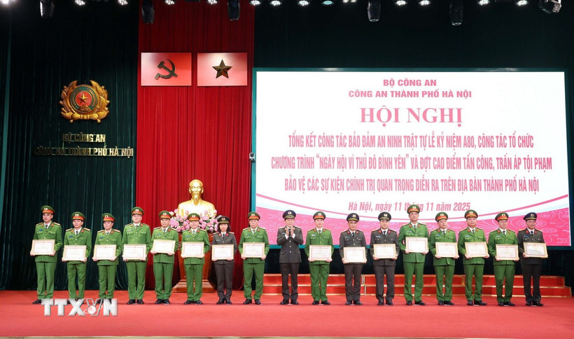 Dịp này, Công an thành phố Hà Nội đã trao Bằng khen của Bộ trưởng Bộ Công an, Thành ủy và Ủy ban Nhân dân thành phố cho các tập thể, cá nhân có thành tích xuất sắc trong công tác bảo đảm an ninh trật tự Lễ kỷ niệm 80 năm Cách mạng Tháng Tám, Quốc khánh 2/9; “Ngày hội Vì Thủ đô bình yên” và đợt cao điểm tấn công, trấn áp tội phạm trên địa bàn./.