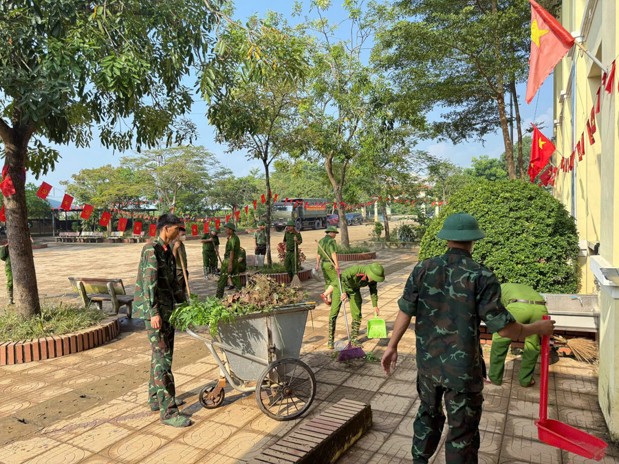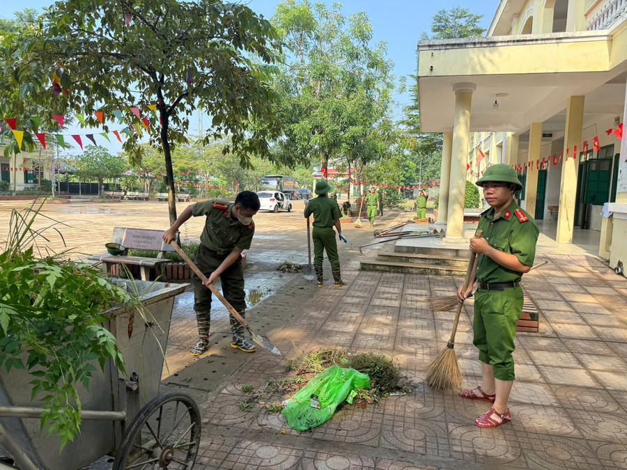 Lực lượng công an giúp các nhà trường tổng vệ sinh, sẵn sàng đón học sinh tới trường vào ngày mai 13/10.